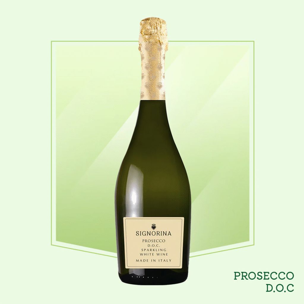 Prosecco is a sparkling white wine from Italy, served as an alternative to Champagne at celebrations and parties. Its light, fruity flavor and bubbles add a touch of cheer to any mood.