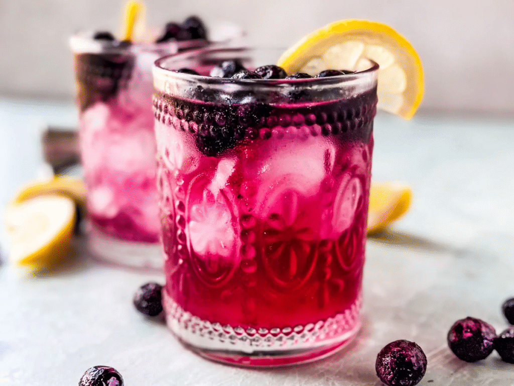 You’ll need: vodka, blueberry puree, lavender syrup, lemon, soda